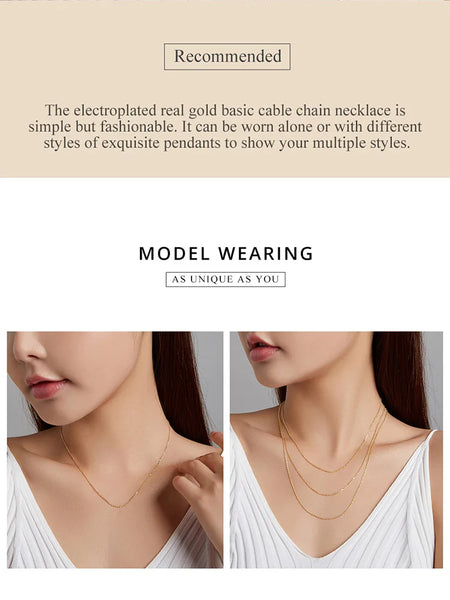 ❤ 【Design】The electroplated real gold basic cable chain necklace is simple but fashionable. It can be worn alone or with different styles of exquisite pendants to show your multiple styles.